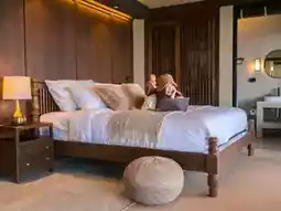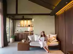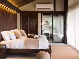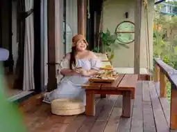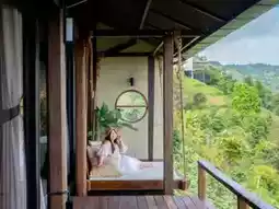 - Private Villa, a room with a hanging bed, sleeping and enjoying the view on the balcony.