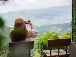 The room we stayed in was a Private Villa. The highlight is that it has a hanging bed and a very wide balcony in front of the room. You can see the view as far as the eye can see, 180 degrees. Afternoon tea is served. Sit and sip afternoon tea while looking at the view. It is very good. Inside the bathroom, there is also a bathtub. You can see the view from the bathroom in a wide angle. There is a rain shower and an automatic toilet. We really like it.
