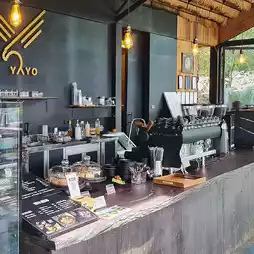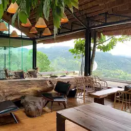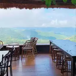 A cafe surrounded by beautiful nature on Doi Chang. The view and atmosphere are very good. There are many corners to choose to sit and take pictures. The entrance to the shop is a bamboo bridge. Along the walkway are coffee trees. There are swings for taking pictures. The interior of the shop is decorated in an open-air style, but the air is cool and comfortable. The shop has a variety of coffee, drinks, cakes, pastries, and food to choose from. Coffee lovers can choose their coffee beans. The shop also produces and sells coffee. The shop grows its own coffee. There is a coffee plantation below the cafe. It seems that there is a zone that is a place to stay. You should ask for the price. It is suitable for sitting and sipping coffee, enjoying the beautiful view, and taking pictures.
