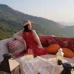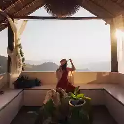 It is a cafe with a good atmosphere and a beautiful sunset view. The shop is decorated in cream tones, minimalist, giving a warm feeling. There is a popular photo corner decorated in Turkish style. The 2nd floor is decorated as a square balcony extending out to clearly see the mountain view. There are also many other corners to sit and sip coffee and enjoy the view. The shop has a menu of food, desserts, and drinks to order. The coffee tastes average. The price of food and drinks is in the hundreds, but the view is worth millions. There is also a zone that is a place to stay. It is right next to each other. The accommodation is beautiful and private, perfect for relaxation.