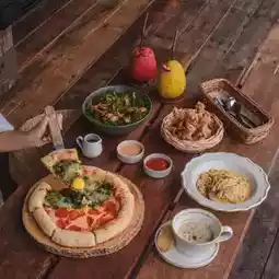 🍕This place also has a cafe that serves delicious homemade pizza that the two of us liked, or you can order drinks and food to eat