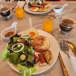 • Breakfast is a large set, with a variety of choices. It is very good.