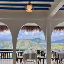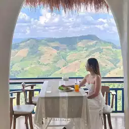 "Nontawa Villa & Cafe", a Santorini-style cafe in white and blue tones with cute corners for taking pictures. The atmosphere is nice and you can see a 360-degree view of the mountains. The shop is located on Doi Chang, Chiang Rai Province. Here, there are both rooms and a cafe and a restaurant. If you're not staying, you can stop by and chill at the cafe.