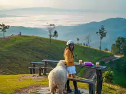 A large sheep farm, it can be called a small sheep kingdom. The entrance fee is 100 baht, which can be exchanged for drinks. There are lemon tea, peach tea, etc., ice cream, and other foods.