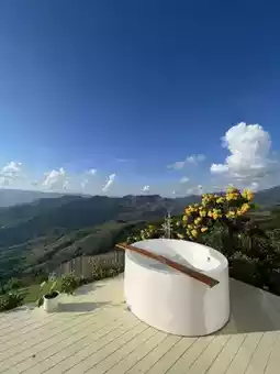 • Minimal style, clean, white-wood theme, mixed with a quiet atmosphere, amidst the morning mist and mountain views.