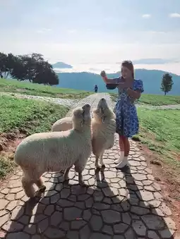 Super cute sheep, you can touch them up close and they have very soft fur. The cafe has everything from drinks, snacks and food.
