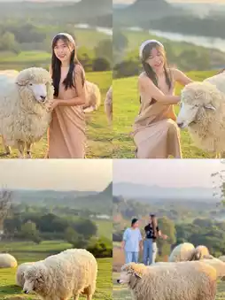 They also offer snacks, food, drinks, and ice cream. If you want to take photos with the adorable sheep, just buy them some food and they'll be all over you! Abonzo Yama Mitsu: In addition to the high mountain view overlooking the Kok River, you'll also find adorable sheep for photo opportunities. There's an entrance fee of 100 baht per person, which can be exchanged for drinks. The view is beautiful and shady. In the evening, the sunset and boats passing by on the Kok River are absolutely stunning. Let's go!