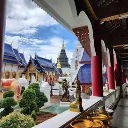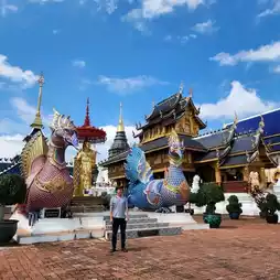Wan Ban Den is another temple that we stopped by to visit while driving to Chiang Dao, Chiang Mai Province. The first impression when we saw it was that it was very beautiful and grand. It is considered another temple that I really like in Chiang Mai. The various buildings look very intricate and beautiful. There is also a view of the mountains lined up for you to see.