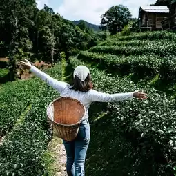 Enjoy sipping tea, eating cake, and taking leisurely photos as a tea plantation girl.