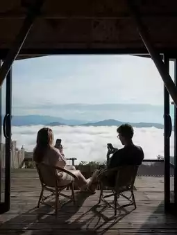 This time, we booked a place to stay. The atmosphere is so nice and romantic. Plus, the weather is so cool. I really like it. The food is delicious.
