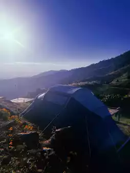 There is a parking lot and you can pitch a tent to sleep in. There are also tents for rent.