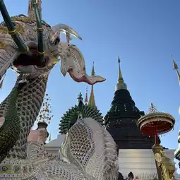 This temple is one of the most beautiful and magnificent temples I have ever been to! The art is a perfect blend of Lanna and Burmese. The church, pagodas, and statues are incredibly beautiful, like walking in heaven.
