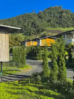 This is Long Pha Homestay, which gives you a feeling of being close to nature to the max. The houses are private because they are separated into each house. The atmosphere is quiet. This place is very beautiful during the rainy season because the fog comes to visit the front of the accommodation. We went during the winter, and the atmosphere is just as good. It is a place to stay that is really suitable for relaxation. It is so good that we want to go back many times.