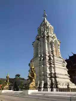 The temple features intricately decorated chapels, halls, and pagodas adorned with gold, red, and white tones, blending Lanna and Burmese designs harmoniously. Every corner is filled with exquisite details, including elaborate wood carvings, offering endless photo opportunities.