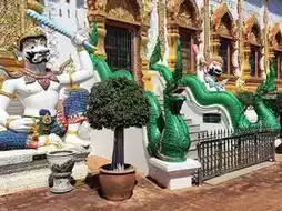 • The temple's exterior features a grand ubosot (ordination hall) and a large viharn (viharn), intricately decorated with multi-tiered, lacquered, and gilded roofs decorated with Thai-Lanna motifs.