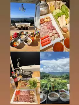 Tonight, we stayed at Baan Plai Fah Homestay (breakfast included). Check-in time is 2:00 PM. They offer both houses and tents, with prices varying. All rooms have private bathrooms. Food and beverages are available, including BBQ sets for 450 baht per set, and afternoon tea sets are available in the tea zone for 500 baht. This depends on the monthly promotion, as some months the tea set is free. Stay tuned for more information from the accommodation. Parking is available.