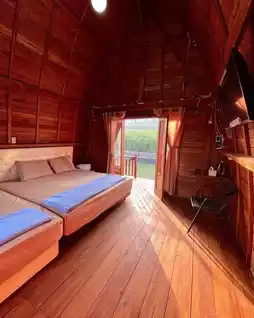 Unique Tourism Cabin is located in a lush valley on the outskirts of Magelang, making it a great choice for escaping the hustle and bustle of the city. This small boutique accommodation is mainly in a log style, combining modern design and Indonesian rural atmosphere, creating a warm experience like home. From the independent cabin, you can see the mountains and rice fields, and at night you can hear the sound of insects and the breeze, perfectly meeting your dual needs for nature and comfort.