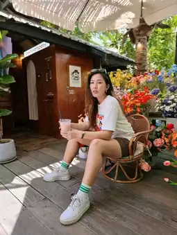 The cafe is a wooden house with a wonderful atmosphere. They have both indoor and outdoor areas. The drinks are also delicious. Be sure to dress up, as there are plenty of photo spots.
