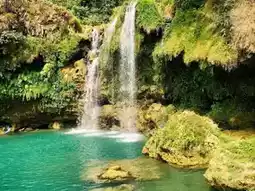 - The next morning I took the 7am trip from Moc Chau to Ba Khan Hoa Binh, . Going from Moc Chau to Ba Khan, if you take a Limo, you get off at Phu Cuong intersection, then call a taxi to continue into Ba Khan resort, about 13 km away, the taxi fare is also very cheap (120), the surrounding rice fields are green and very beautiful. If you are fascinated by Ta Dung, Dak Nong but have not had the chance to go, Ba Khan is also a good choice. Ba Khan sells entrance tickets for guests who do not stay at the resort and rents rooms by the hour, everyone can choose to suit their time.