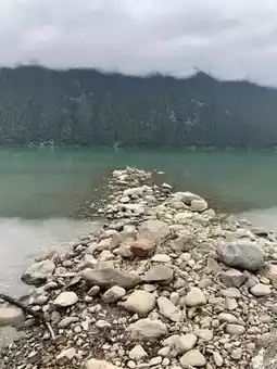 The holy lake of the Nyingma sect of Tibetan Buddhism, with clear water, a tranquil environment, and a rich religious atmosphere.