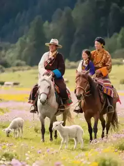 ◦ Gongbu Tibetan horseback riding: Dress in traditional costumes, ride through flower seas, interact by feeding lambs (short-legged horses with child saddles);