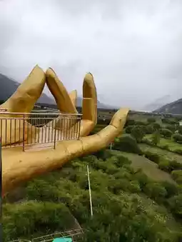 The Danniang Buddha's Palm Sand Dune is located in Danniang Township, Milin City, Tibet, situated by the Yarlung Tsangpo River. This unique natural landscape is named for its sand dunes shaped like a Buddha's palm, surrounded by majestic mountains and clear waters, creating a stunning contrast.