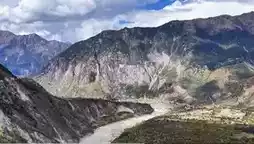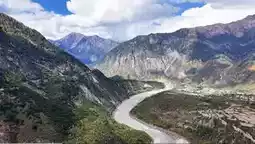 In the distance are snow-capped mountains that never melt🏔️, nearby the rushing river flows endlessly