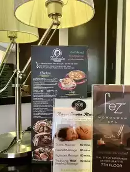 🛎️ The hotel boasts spacious common areas appointed with plush sofas, elegant tables, and a stylish staircase that adds grandeur. Thoughtful amenities include menu cards for Tiabuela restaurant, Fez spa, and in-room massage services.