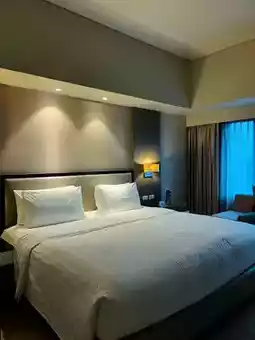 The room was good, it's big and comfortable. The interior is simple, modern, and warm. The bed is nice. There's a mini kitchen for your light cooking needs which other hotels don't really offer. My favorite part of the room is the windows. As for the lobby and common hallways, they're all nice and modern looking. The warm lighting all over the hotel just adds to the ambiance it builds up.