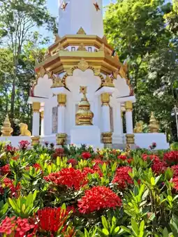 📍Located on Khao Tha Phet, built in 1957 in the style of Srivijaya art mixed with early Rattanakosin art. The shape of the chedi is tall and sits on an octagonal base. Inside, there are relics of the Lord Buddha. It is a place of worship for the people of Surat Thani.