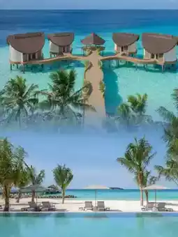As you enter the hotel, you're enveloped in an atmosphere of pure luxury 🏨. The architecture seamlessly blends modern elegance with Maldivian charm, creating a grand yet graceful exterior. The lobby features a high-ceiling design, sparkling crystal chandeliers, gleaming marble floors, and artwork showcasing local culture on the walls, exuding an air of sophistication. The hotel gardens are lush with tropical plants and vibrant flowers, filling the air with fragrance. The infinity pool merges seamlessly with the ocean, allowing you to swim as if you're one with the sea, and fully embrace the leisurely pace of vacation life.