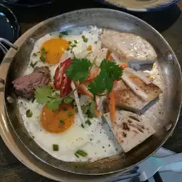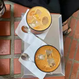 The food is great the menu has few items and they all looks good I have tried their breakfast and it was super tasty. Staff and service is very nice. Really pretty inside with wooden tables and leather covered stools.