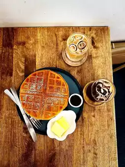Waffle is crispy and tasty, we also like the combination they offered. However, the ice cream is not up to the standard, quite normal ice cream and melted quickly. It would be great if the ice cream part could be improvised.