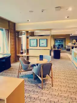 The executive lounge has nice views of the area and serves good nibbles and drinks.