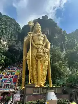 4️⃣Batu Caves: A group of limestone caves, famous for its magnificent Hindu temples and huge golden statues. The caves and rainbow stairs are like entering another world.