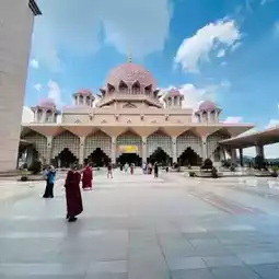 Putrajaya Mosque Masjid Putra (Putra mosque) or Pink Mosque, built from pink granite, has outstanding and beautiful Islamic art. The 116-meter-high dome was inspired by the Sheikh Omar Mosque in Iraq. It is a place for Muslims to perform religious ceremonies. It can accommodate up to 15,000 people. Around the mosque, you can see the view of both sides, the lake and the new government office of Putrajaya.
