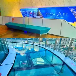 The highest landmark in Johor Bahru is located on the 34th floor, approximately 149.7 meters above the ground, offering stunning views of the city from high above. It provides a 360-degree panoramic view. The observation deck features glass barriers and handrails, allowing you to walk on the endless glass floor, and there is a comfortable restaurant with a beautiful environment, providing a unique experience in Johor Bahru.