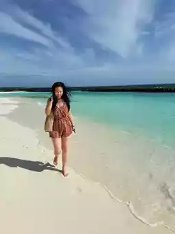 Been raining for the past few days and cloudy but finally the sunny day is back! Not to think much, just change the cloth and wear a pink sunglasses to get my husband all set by helping me to take some insta-worthy picture by the jelly-look-like color sea!