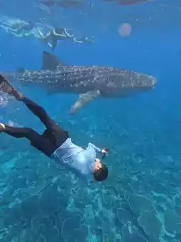 5. Other paid activities: Whale shark snorkeling is highly recommended! It takes a whole morning, including lunch, with a speedboat trip to the northern atoll. The snorkeling water quality is excellent, and swimming with sharks is a unique experience. On the way back, there's a beautiful uninhabited island. Scuba diving requires a PADI certification, or you'll need to pay for lessons. There are also paid dining options like water dinners and beach barbecues, averaging $300 per person.