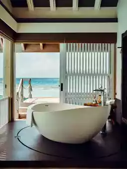 Environment and facilities: this is a luxury beachfront resort located on a private coral island, surrounded by palm trees and faces the Indian Ocean. We stayed here for three nights during our vacations at this magnificent place. The rooms we stayed are clean and spacious, the bed is super comfy and the service is super cool.