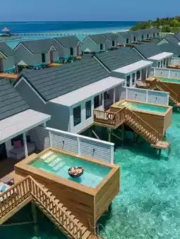 • Check into your overwater villa → Stroll along the beach + relax by the infinity pool