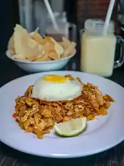 Kottu is about to cut the bread into pieces, eat a bit like our Hong Kong rice noodles, plus different meat and vegetables fried, another plate like shrimp chips like crisps, the pieces on the crisps together, add a little lime juice, two completely different tastes together and quite tasty 👍