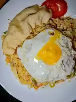 As a coastal country, eating seafood here is believed to be guaranteed, ordered this HK$45 seafood fried rice, containing shrimp 🦐, mussels, fish 🐟, and used a lot of vegetables to fry, both taste and appearance have improved a lot, shrimp chips and a sun egg 🍳, but the shrimp chips are very wet 🤢