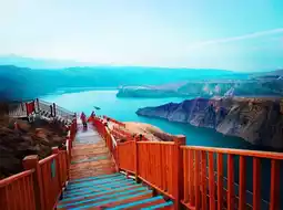 360° unobstructed view overlooking the turquoise reservoir, with Danxia landforms and emerald lake water creating a strong visual impact! Not recommended for those afraid of heights, but truly breathtaking