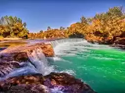Known for surrounding waterfalls and exceptional natural views, Manavgat is a beautiful retreat for those who enjoy their vacations in the lap of nature. It has a 64 km long coastline with sandy beaches, a river and a waterfall, mountains and forests. The main highlight is the Manavgat River and the waterfall.