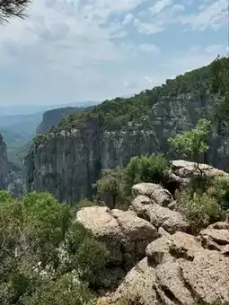 #summervacay Tazi Kanyonu is straight up wild. Like, you hike through this super chill pine forest and then suddenly you’re standing on the edge of this massive canyon that looks like it was carved by giants. The drop is insane, kind of makes your stomach flip, but the view? Total jaw-dropper. Rugged cliffs, crazy deep valley, and way off in the distance, mountains fading into the sky.