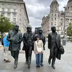 Walking from the city towards the sea, you'll suddenly come across statues of the four Beatles! Positioned with a view of the entire city from Liverpool Port, these statues attract many tourists taking photos 📸 (of course, I had my picture taken too!). From there, a 5-minute walk along the waterfront will bring you to the "Beatles Museum." This museum is an incredible place where you can learn everything about the Beatles, from their origins to the present day 😊. They even offer Japanese audio guides, so no worries if you're not confident in English 🙆♀️🙆♀️. I only knew their songs before visiting, but learning about their backstory was a truly enriching experience!