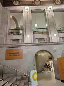 The pillars stand tall like sentinels of thought, framing the entrance with neoclassical grace. It’s a place where history meets modernity — where the weight of books is balanced by the lightness of design. Visitors often stop here for photos, drawn by the interplay of stone, shadow, and silence. It’s not just a lobby; it’s a threshold into Manchester’s intellectual heart.