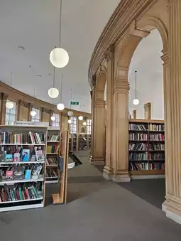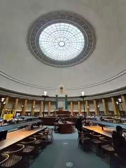 Step into the lobby of Manchester Central Library, and you’re greeted not just by architecture — but by atmosphere. The space opens up like a quiet cathedral of learning, crowned by a magnificent dome that filters daylight into soft illumination. The symmetry is striking: marble floors, clean lines, and a circular flow that invites you to pause, look up, and breathe in the stillness.