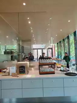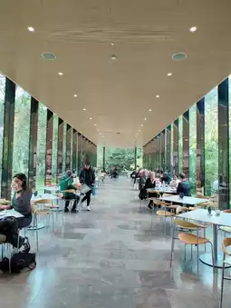 The atmosphere is relaxed and welcoming, with plenty of tables and cozy corners to settle into. Whether you’re stopping by for breakfast, lunch, or just a snack, the menu offers comforting options paired with warm beverages — ideal for a mid-day pause or a reflective moment after exploring nearby exhibits. The garden view adds a layer of tranquility, making it feel more like a conservatory than a café.